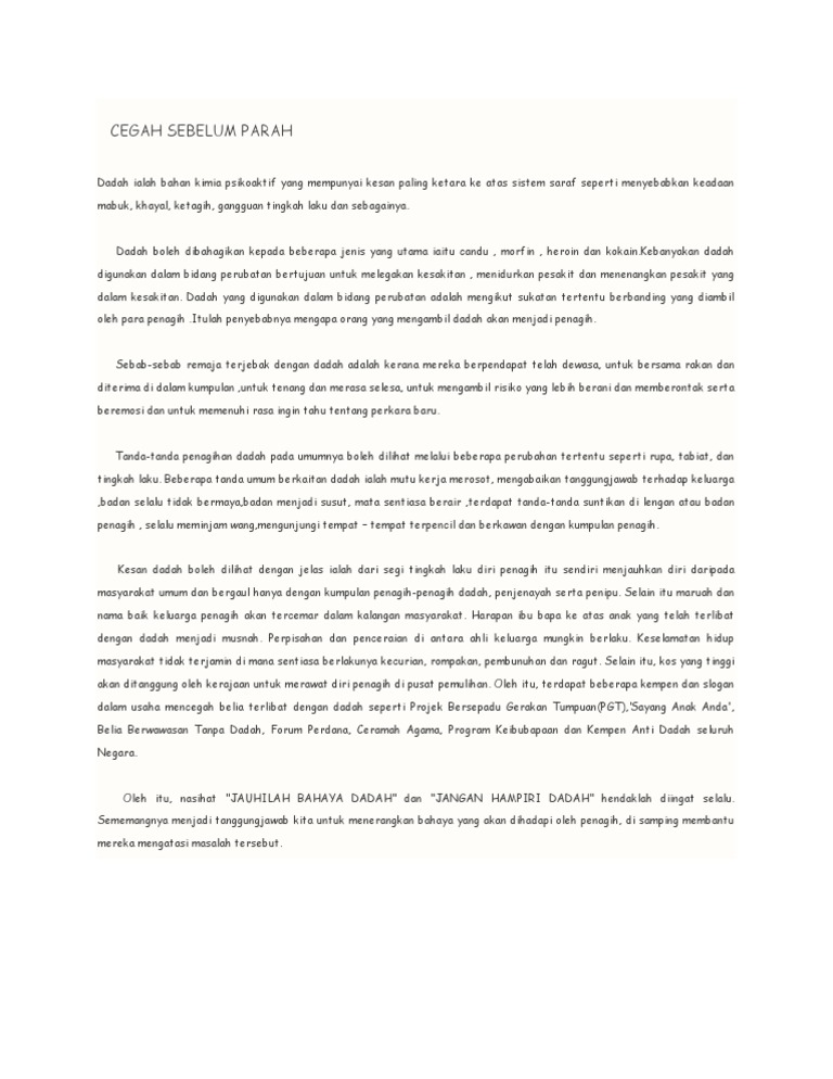Cegah Sebelum Parah Dadah By Evelyn Low